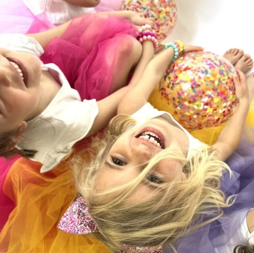 Clear inflatable ball filled with multicoloured confetti for visual fun. π