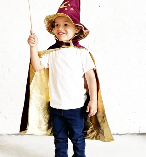 Complete magician dress-up set in a rich bordeaux colour. 🎩