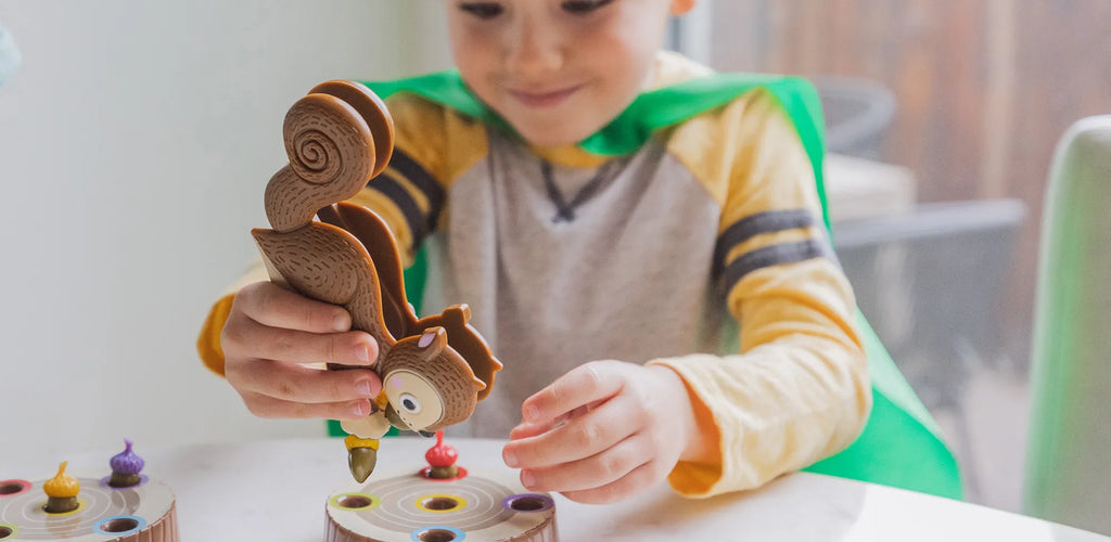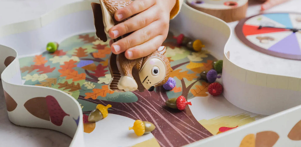 Builds colour recognition, fine motor skills, and hand–eye coordination through playful acorn-grabbing action 🎯