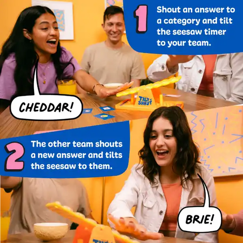 How to play: Select a category, shout an answer, and tilt the device—if your opponent can’t respond before the ball rolls to their side, they lose the round. Ready, tilt, shout, and laugh! Tilt N Shout delivers high-energy trivia and action in one unforgettable party package.