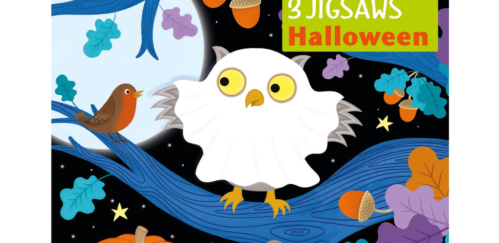 This festive set combines a picture book with three simple jigsaw puzzles for seasonal fun 🎃