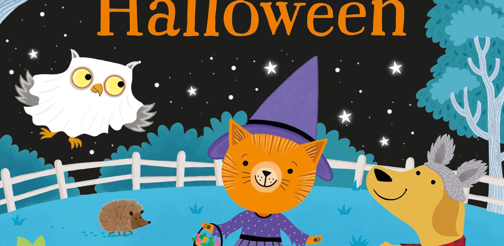 The book is filled with delightful illustrations featuring animal characters dressed as witches, ghosts, and monsters.