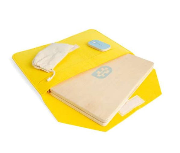 What’s in the box: 1 wooden laptop, 1 smartphone, 1 coffee cup, 1 notepad, 1 storage tray.