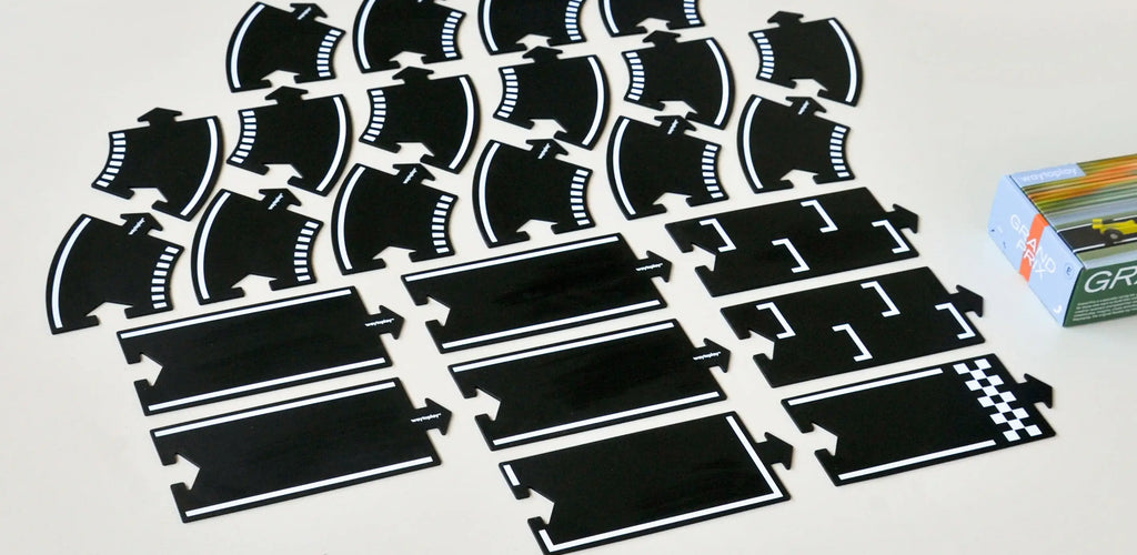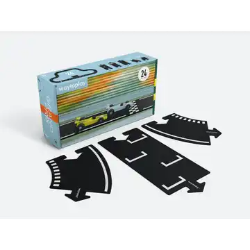 24 flexible track pieces with racing details like pit lanes and curbs 🏎️