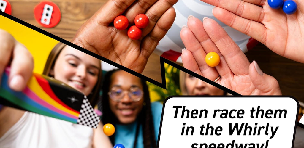 Players launch their marbles onto the speedway and watch as chance and momentum decide the outcome—fast, unpredictable, and full of suspense
